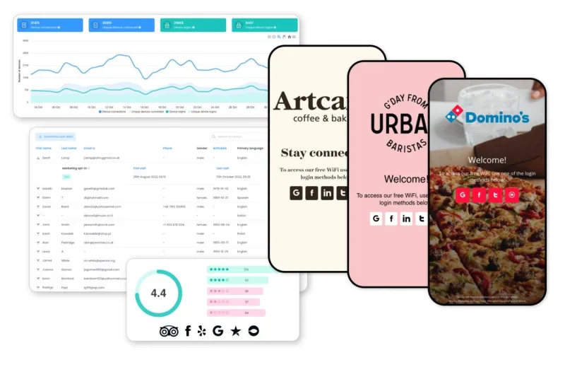 Give visitors free internet and gather customer insights effortlessly. Increase repeat visits, grow your reviews, and build your email list all through your WiFi login.